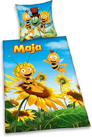 Deckenbezug 135 l x 100 b cm mit knopfleiste. Diese schöne bettwäsche von herding zeigt biene maja und ihre freunde und ist ein muss für jeden fan. Feuchtigkeit wird absorbiert wärme hingegen gespeichert. Kopfkissenbezug 60 l x 40 b cm mit hotelverschluss.